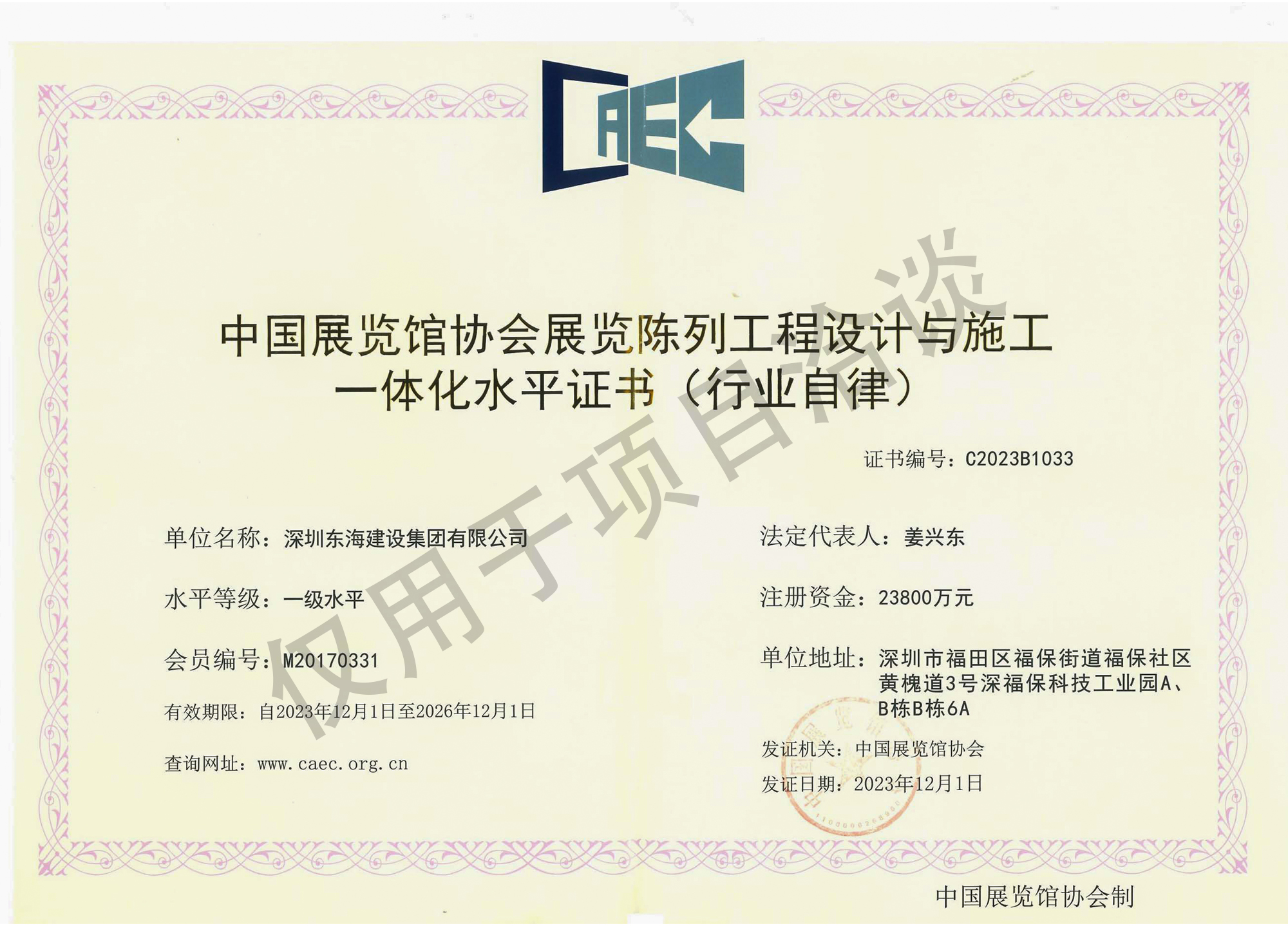 展覽陳列工程設(shè)計(jì)施工一體化資質(zhì)證書